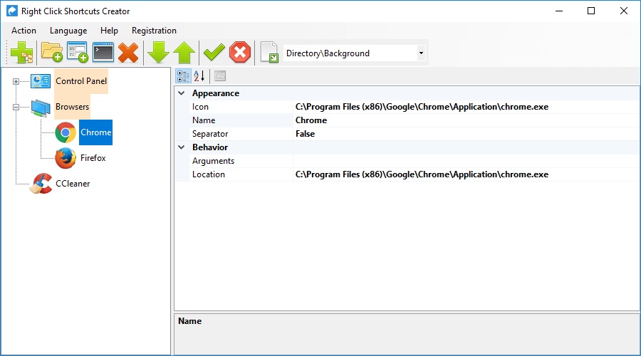 - добавлять в контекстное меню, вызываемое правой кнопкой «мыши», ярлыки приложений, файлов, папок, а для компактности – создавать подменю;